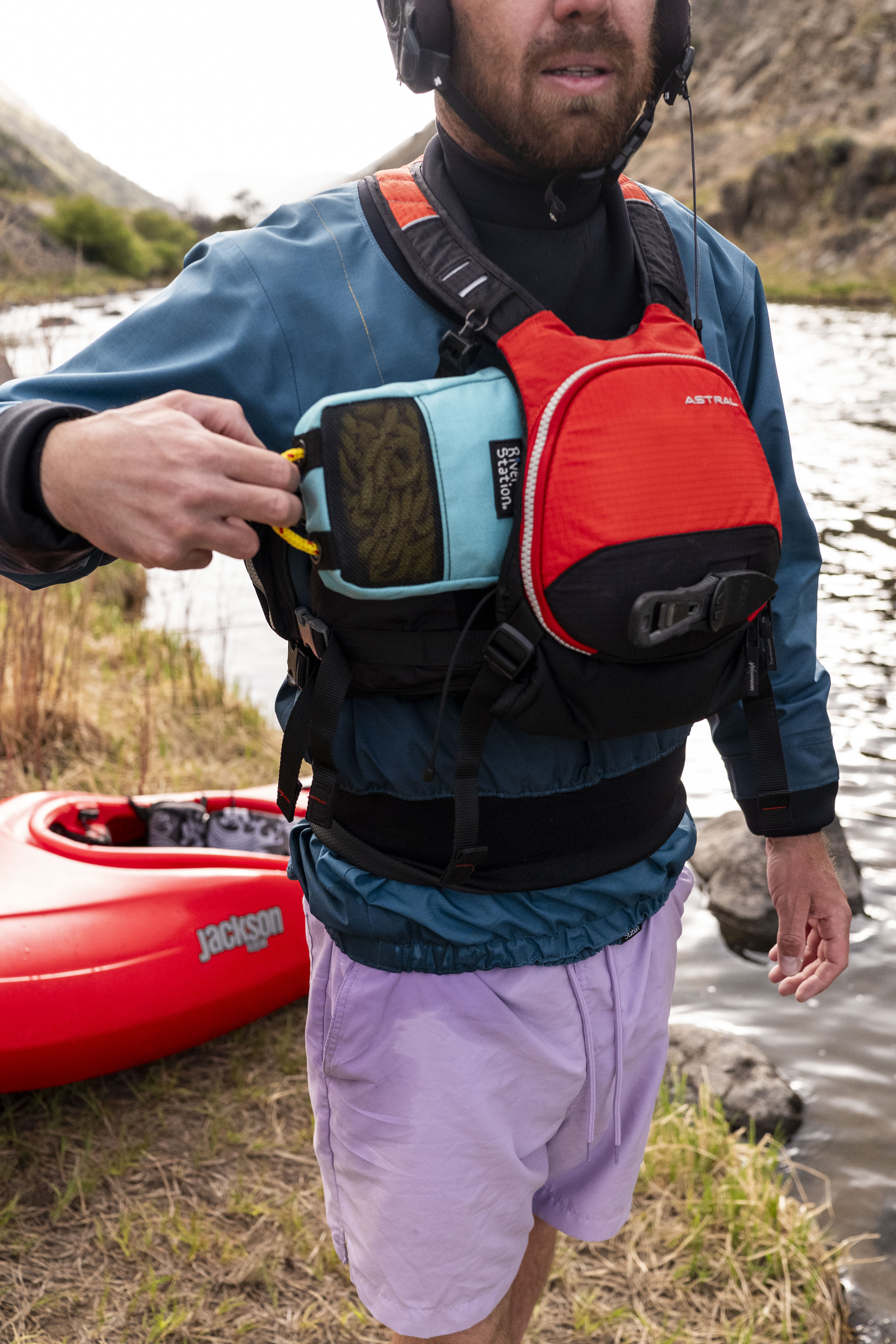 Very wide mouth for easy stuffing! Plus our new Velcro lock in system. Keeps your throw bag from falling out accidentally or while swimming. (This feature works with Astral rescue PFDs and the Bowen.)